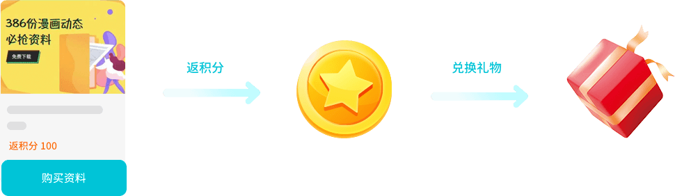 购买资料可返还相应积分,积分可用于兑换礼物,从而增强用户黏度、促进成交