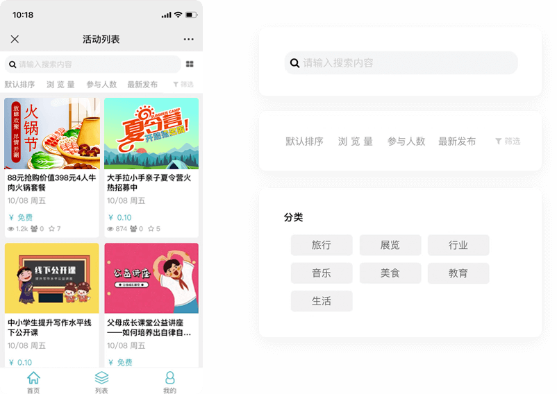 搜索、分类、筛选三种方式检索活动,让您第一时间查找到适合自己的线下活动。